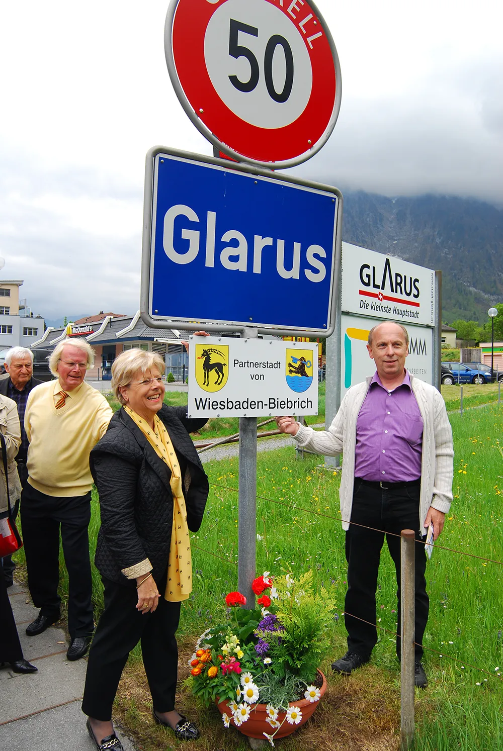 Am 13. November 2008 entschied die Wiesbadener Stadtverordnetenversammlung, dem Wunsch aus Biebrich zu folgen und die freundschaftlichen Beziehungen auf eine offizielle stadtpolitische Ebene zu heben. Am 11. Januar 2009 wurde daraufhin beim Neujahrsempfang im Biebricher Schloss die offizielle Partnerschaftsurkunde unterzeichnet. Eine weitere feierliche Unterzeichnung fand am 13. März 2009 im Gemeindehaus von Glarus in Anwesenheit des Glarner Gemeinderates statt.